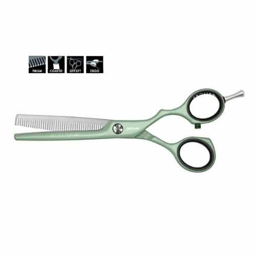 Ergonomicznie zaprojektowane ramiona. Ostrze ze stali nierdzewnej o bardzo wysokich parametrach trwałości i ostrości, hartowane przy pomocy systemu Friodur w bardzo niskiej temperaturze, które znacznie wydłuża żywotność nożyczek.