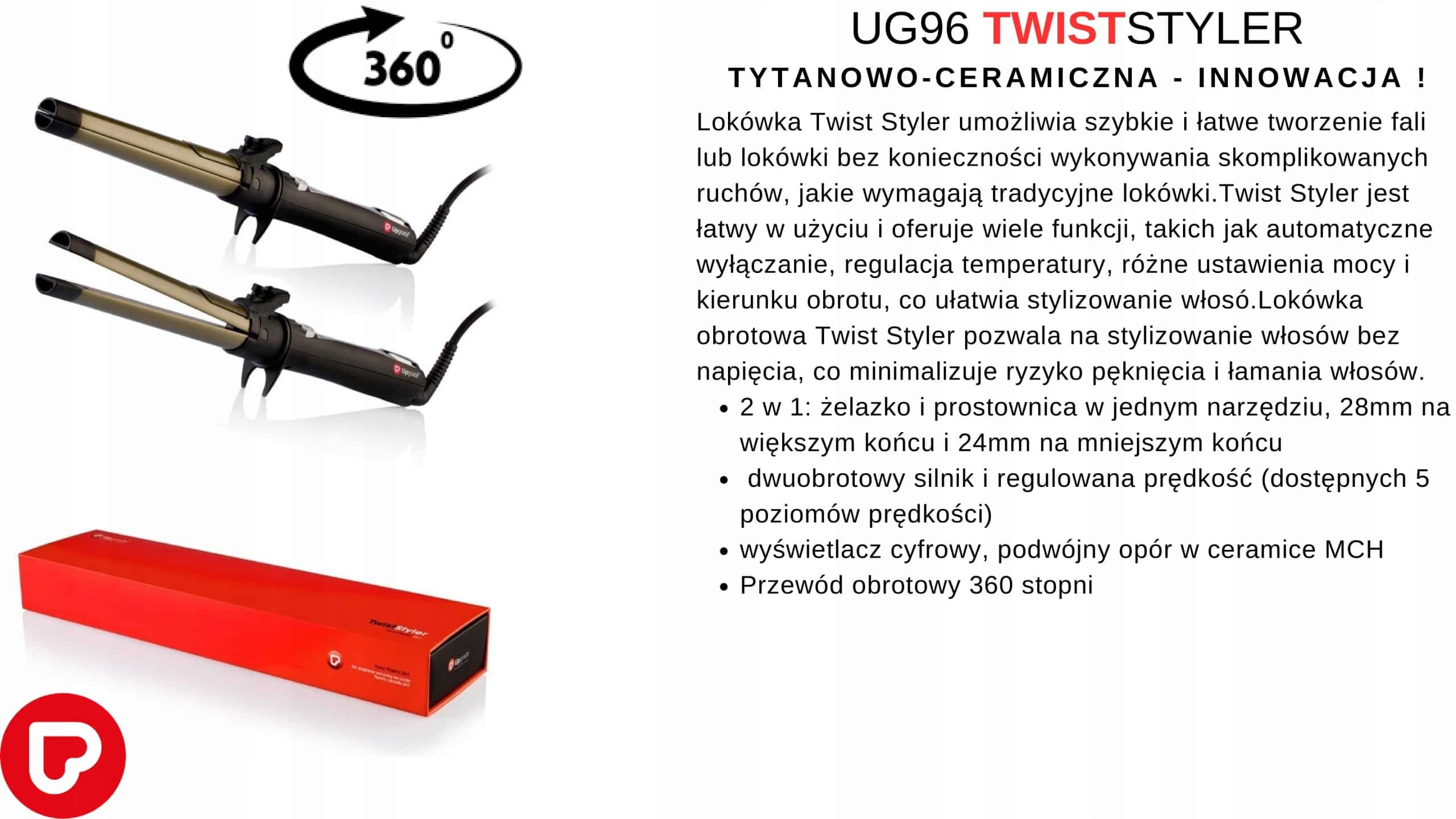 FG96 Upgrade to nowoczesne i wszechstronne narzędzie do stylizacji włosów, które pozwala na łatwe i szybkie uzyskanie wymarzonej fryzury. Dzięki funkcjom lokówki oraz prostownicy w jednym urządzeniu, kończy się era kompromisów w stylizacji.